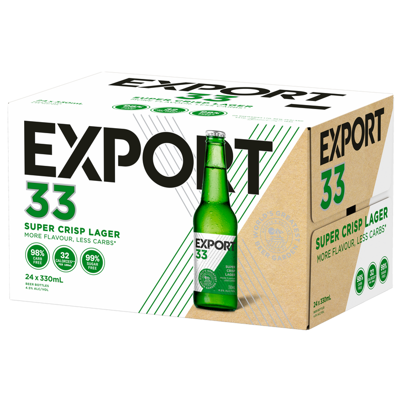 A refreshingly lively lager with hints of tropical, fruit like notes and a mild bitterness. DB Export 33 has an ABV of 4.6%. This full flavoured lager was launched in 2008 and named 'Best Low Carbohydrate Beer in New Zealand' in 2009 and 2010 at the NZ Beer Awards. It also became the first New Zealand low carb beer to win a Gold medal at the prestigious Monde Selection awards in Belgium in 2010, winning Gold again in 2011.